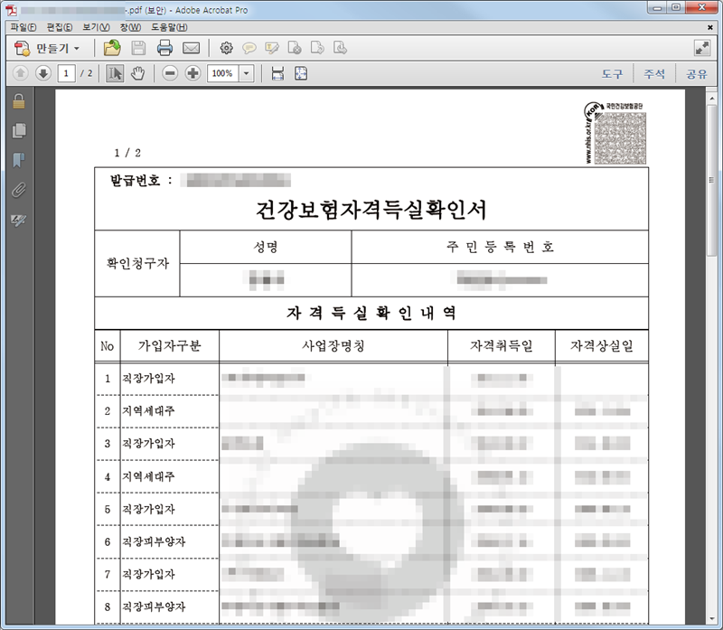 ☞자격득실확인서란? 가입자 또는 가입자였던 자의 건강보험자격득실 내역을 확인하는 증명서.